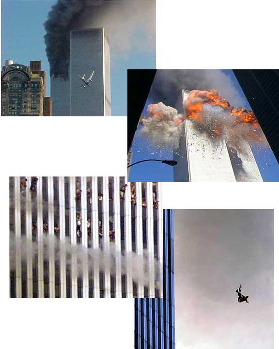 I feel lucky to be able to write again today. Last night the people of New York waited cautiously for another terrorist act which hasn't happened yet. We keep hoping that the worst is over. Below are some amazing photos from around the web. You can see real people making one horrible last decision because of a handful of cowards. The air smells of burning rubber. There are National Guard troops in the streets. There are many questions to ask, how could this happen? Where was our national defense? |